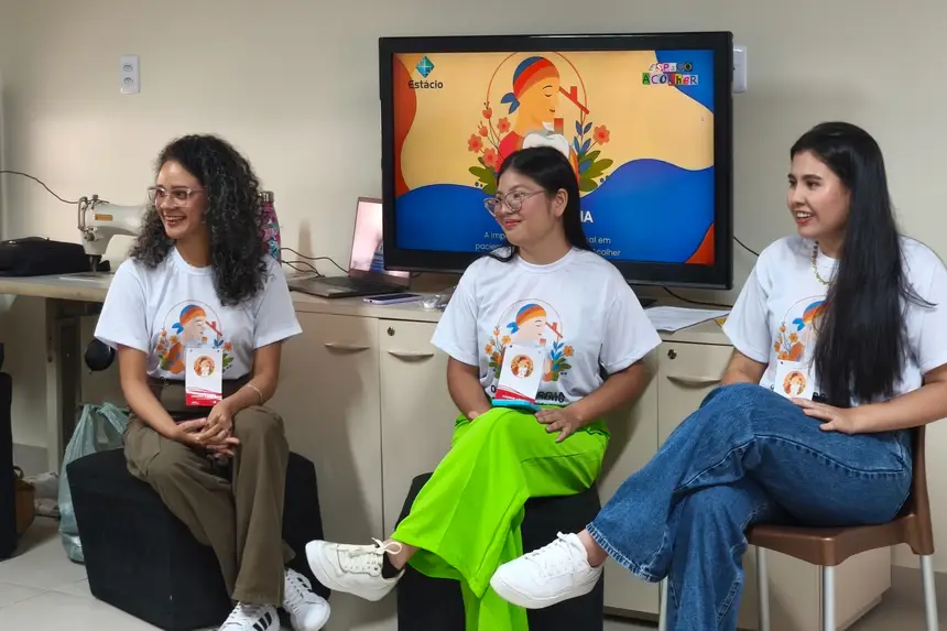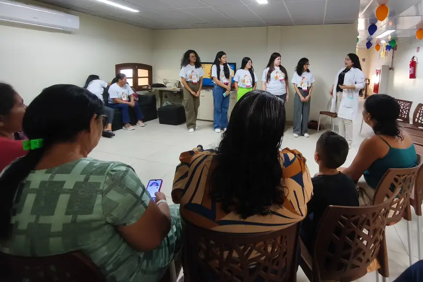 Rosivalda e outras acompanhantes, pacientes e servidores do Espaço Acolher participaram de uma manhã de cuidados com o bem estar e com a saúde bucal que contou com palestras sobre a higiene dos dentes para os adultos e atividades lúdicas voltadas à sensibilização das crianças para o tema, além da orientação, de atendimentos de profilaxia como limpeza e aplicação de flúor, promovidas por acadêmicos de odontologia da faculdade Estácio, em Belém.